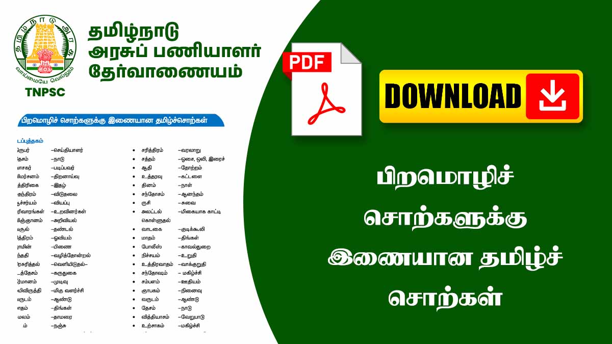 HomeNotesAll Exam Notes🌍 பொதுத்தமிழ் – பிற மொழிச் சொற்களுக்கு இணையான தமிழ் சொற்கள் | TNPSC Tamil...
