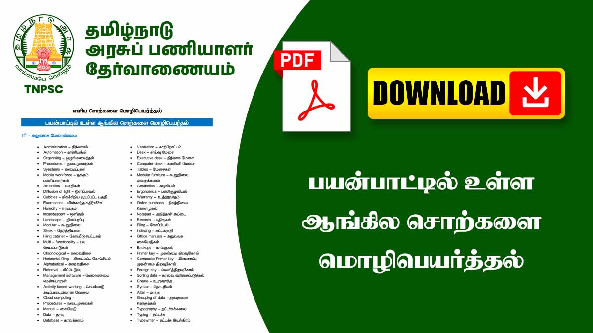 - TNPSC தேர்வில் “சொல்லுக்கு இணையான பொருள்”, “மொழிபெயர்ப்பு தேர்வு” போன்ற கேள்விகள் வருவதால், இதை முறையாக பயிற்சி செய்யுங்கள்.