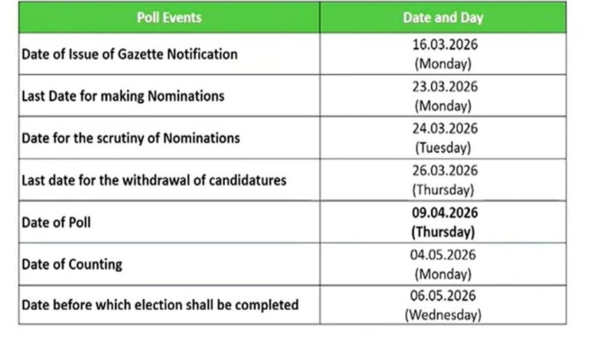- வாக்குப்பதிவு நாள்: 09 ஏப்ரல் 2026