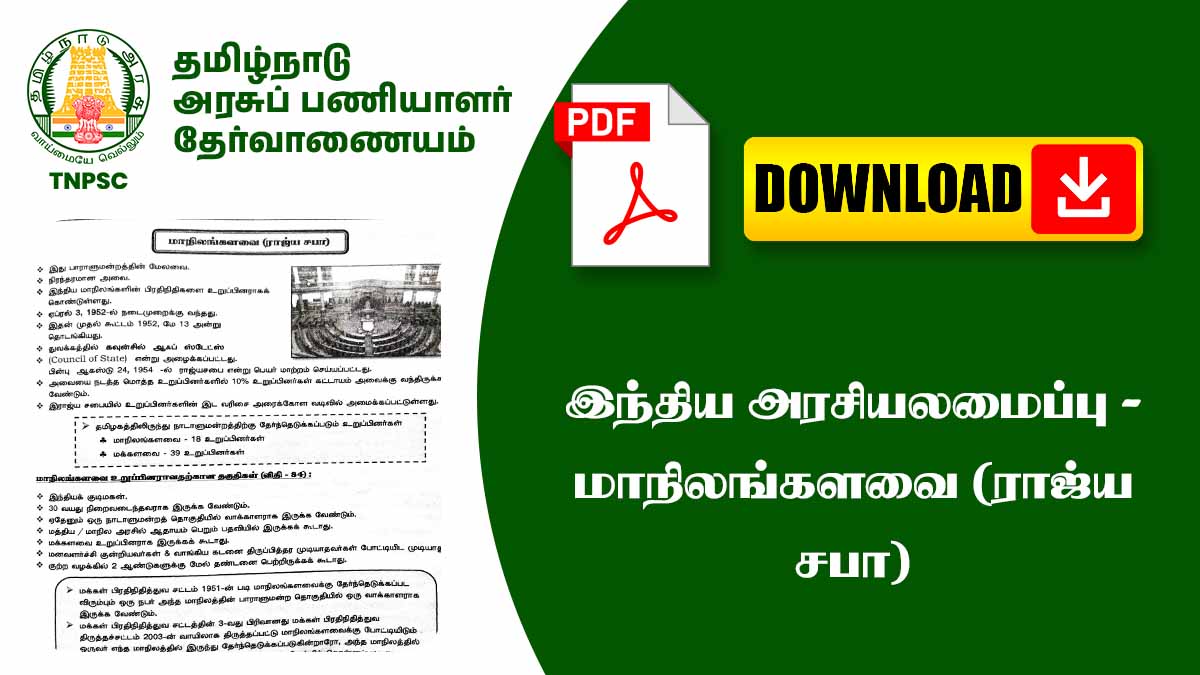 TNPSC தேர்வுகளில் மாநிலங்களவை பற்றிய கேள்விகள் பொதுவாக:
