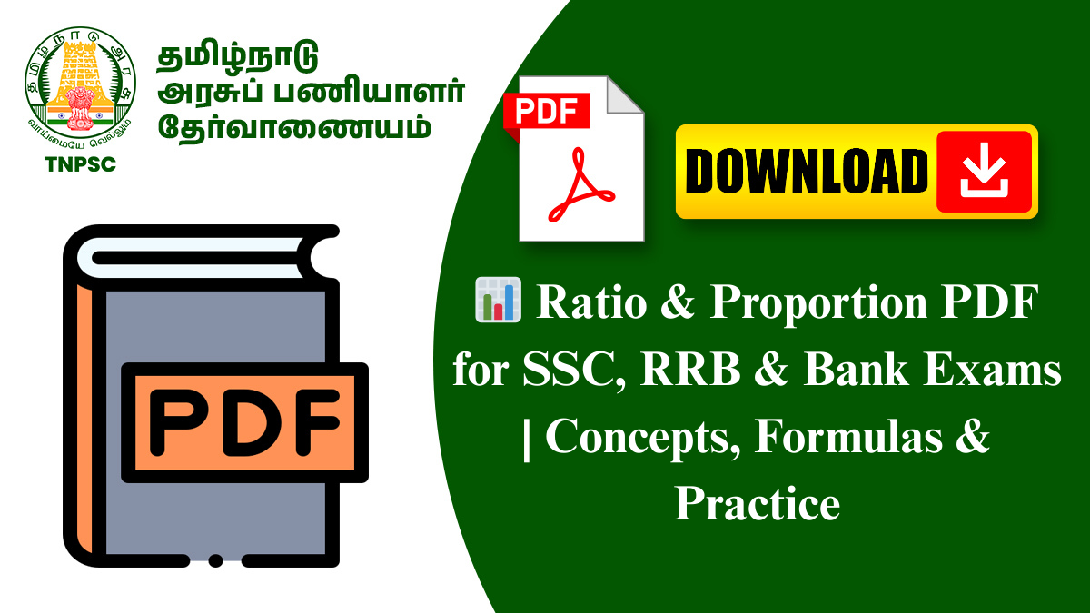Ratio and Proportion is one of the most important and frequently asked topics in Quantitative Aptitude for competitive exams such as SSC, RRB, Bank, TNPSC, TET, and other government examinations. Questions from this chapter form the base for many other arithmetic topics like partnership, mixture, percentage, time & work, and profit & loss.