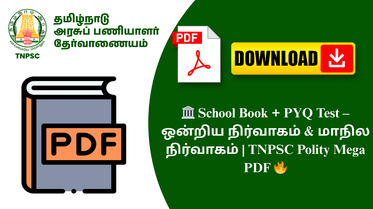 ЁЯПЫя╕П School Book + PYQ Test тАУ роТройрпНро▒ро┐роп роиро┐ро░рпНро╡ро╛роХроорпН & рооро╛роиро┐ро▓ роиро┐ро░рпНро╡ро╛роХроорпН | TNPSC Polity Mega PDF ЁЯФе