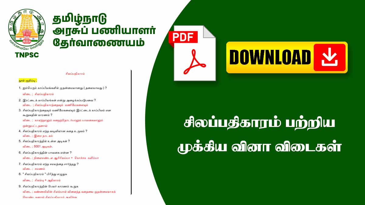 💪 சிலப்பதிகாரம் PDF Notes உருவாக்கி தினமும் 10 வினாக்கள் படித்தால் TNPSC/Police Exams இல் 2–3 வினாக்கள் உறுதி.