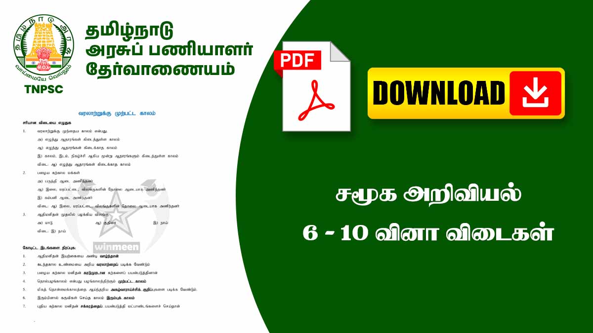 TNPSC, TNUSRB, TET, TRB, SSC, RRB மற்றும் பள்ளி தேர்வுகளுக்காக 6th to 10th Standard Social Science Book Back Questions & Answers (Tamil Medium) தொகுக்கப்பட்டுள்ளது.