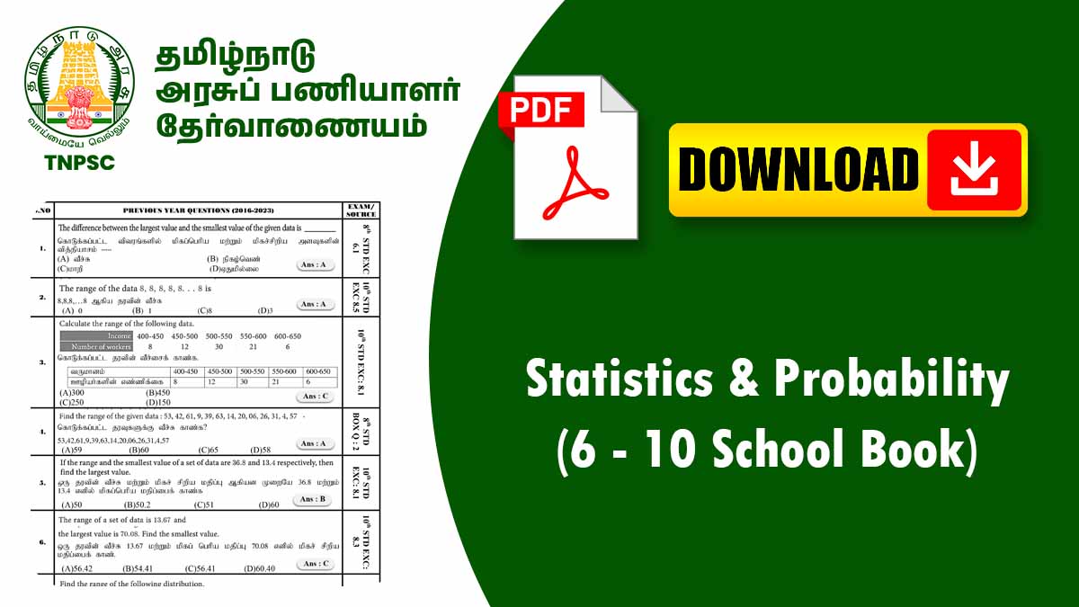 Statistics (புள்ளியியல்) மற்றும் Probability (சாத்தியக்குறை) 6–10 வகுப்பு Maths syllabus-ல் மிகவும் முக்கியமான அத்தியாயங்கள்.