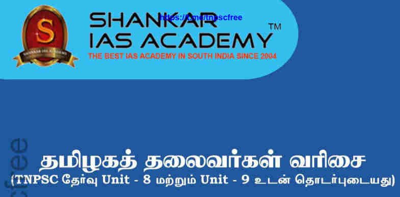 Tamil Nadu Leaders Short Notes for TNPSC Exams – Shankar IAS Academy