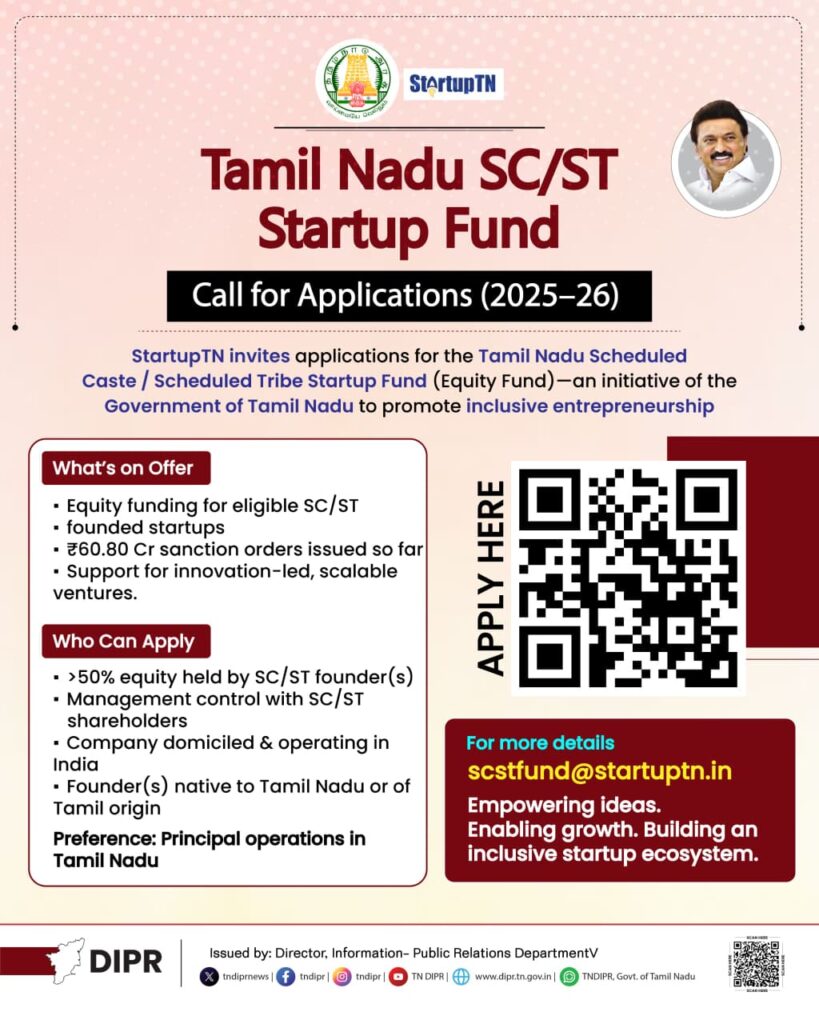 Tamil Nadu SC / ST Startup Fund – 2025–26 நிதி ஆண்டிற்கான