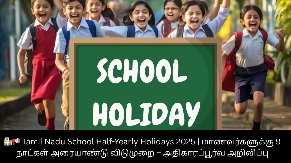 🏫📢 Tamil Nadu School Half-Yearly Holidays 2025 | மாணவர்களுக்கு 9 நாட்கள் அரையாண்டு விடுமுறை – அதிகாரப்பூர்வ அறிவிப்பு