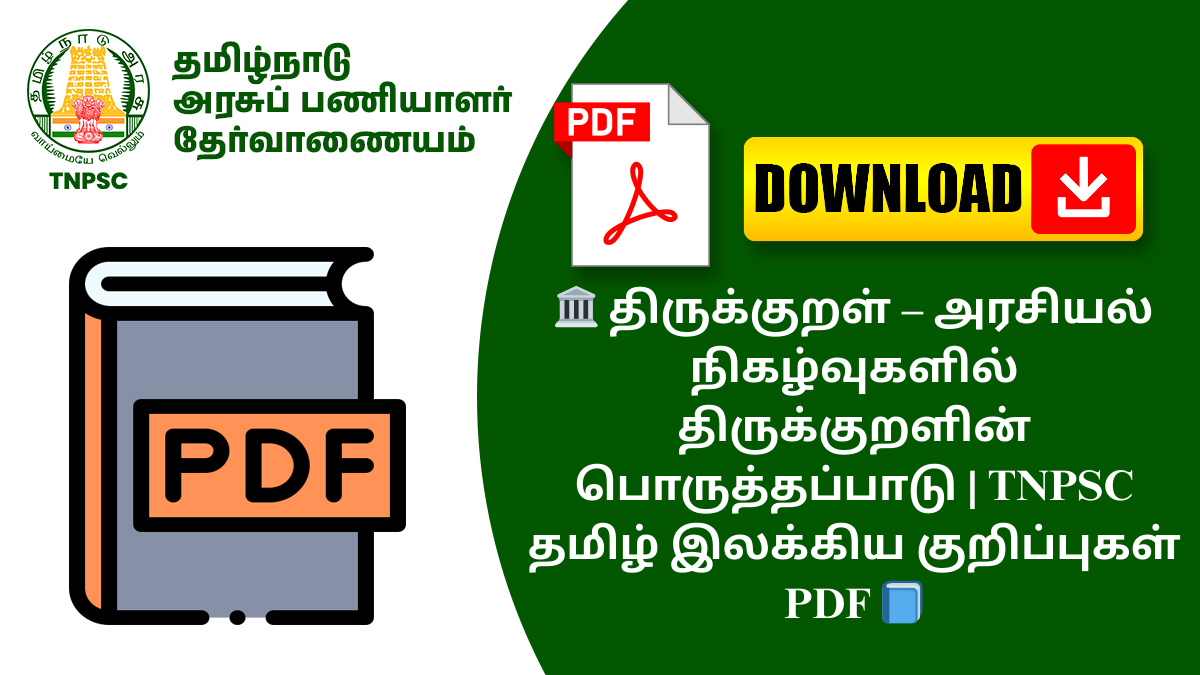 📥 இப்போது திருக்குறள் – அரசியல் நிகழ்வுகளில் திருக்குறளின் பொருத்தப்பாடு PDF-ஐ பதிவிறக்கம் செய்து உங்கள் தமிழ் இலக்கிய தயாரிப்பை வலுப்படுத்துங்கள்! 🚀