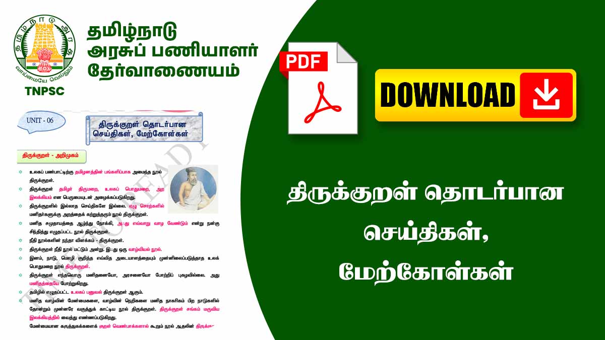 🎯 TNPSC & TNUSRB தேர்வுகளில் ஆசிரியர், குறள் எண்ணிக்கை, பிரிவுகள், மேற்கோள்கள் ஆகியவை அடிக்கடி கேட்கப்படும்.
