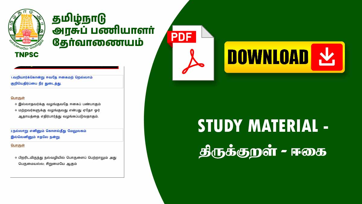 திருக்குறள் – அதிகாரம் 4 : ஈகை (Study Material) வழங்கப்பட்டுள்ளது.