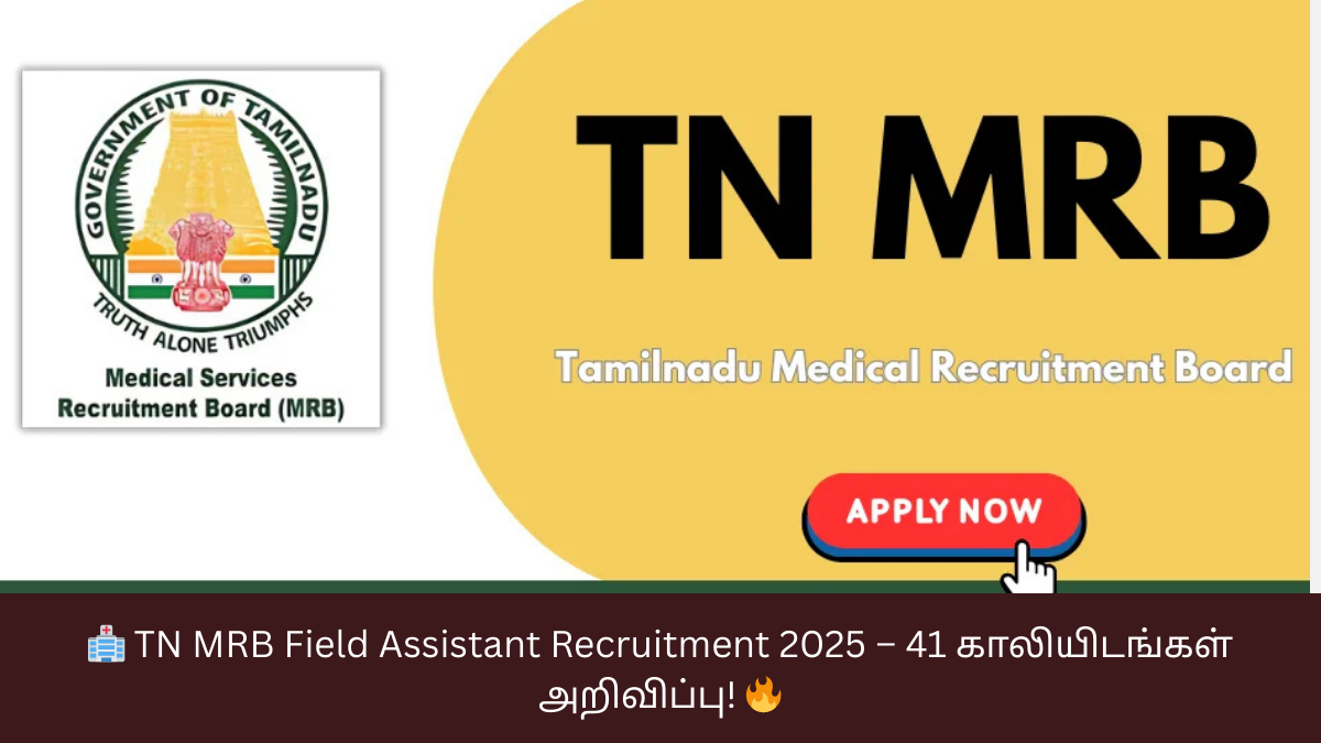 HomeNewsவேலைவாய்ப்பு செய்திகள்🏥 TN MRB Field Assistant Recruitment 2025 – 41 காலியிடங்கள் அறிவிப்பு! 🔥
