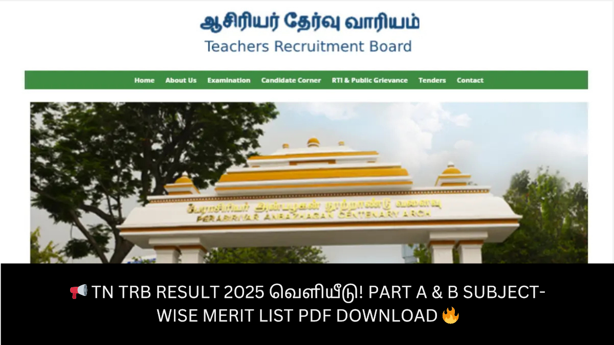 📢 TN TRB Result 2025 வெளியீடு! Part A & B Subject-wise Merit List PDF – மார்க் + தகுதி நிலை வெளியானது 🔥