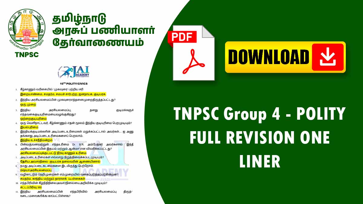 இந்த Polity One Liner Notes TNPSC Group 4 தேர்வில் கடைசி நேர ரிவிஷனுக்குப் பெரிதும் உதவும்.