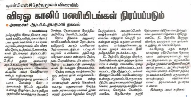 ✅ தினமணி நாளிதழில் வந்த அரசுப் பணி தேர்வுக்கான மாதிரி வினா விடைகள் Collections