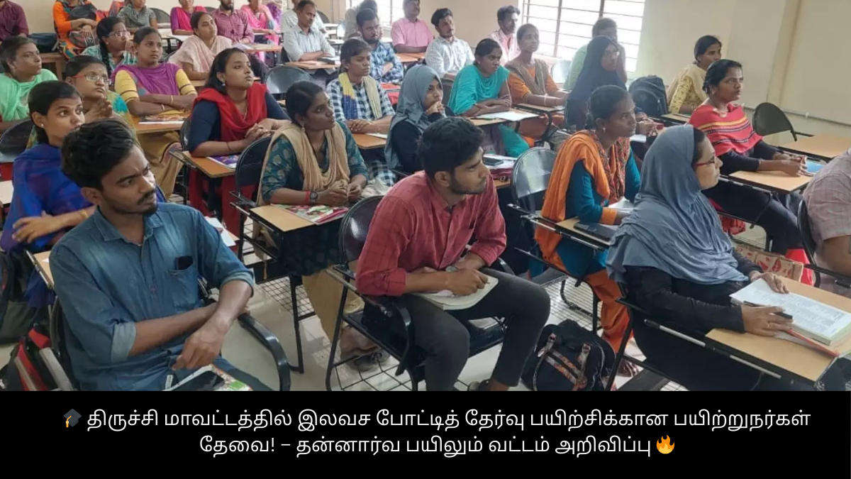 🔥 திருச்சி மாவட்டத்தில் இலவச TNPSC/போட்டித் தேர்வு பயிற்சிக்கு சிறந்த பயிற்றுநர்கள் தேவை!