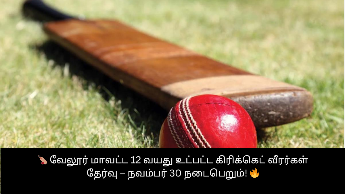 🏏 வேலூர் மாவட்ட கிரிக்கெட் அணிக்கு 12 வயது உட்பட்ட வீரர்கள் தேர்வு – நவம்பர் 30! 🔥