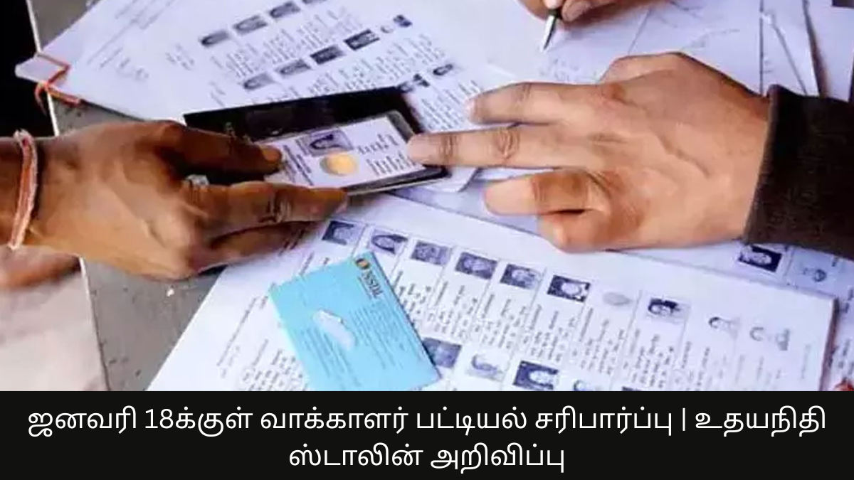 HomeNewslatest newsஜனவரி 18க்குள் வாக்காளர் பட்டியல் சரிபார்ப்பு | உதயநிதி ஸ்டாலின் அறிவிப்பு