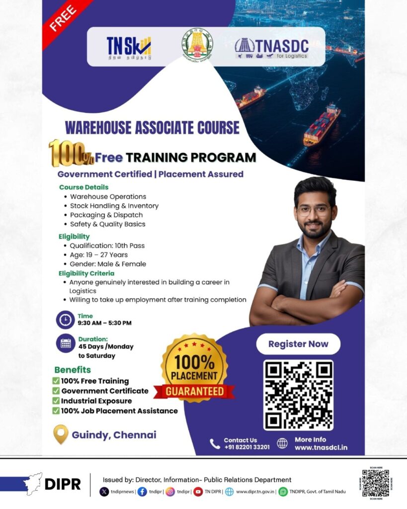 தமிழ்நாடு அரசு சார்பில் TN Skill Development Corporation (TNSDC) மற்றும் TNASDC (Tamil Nadu Skill Development Corporation for Logistics) இணைந்து நடத்தும்
