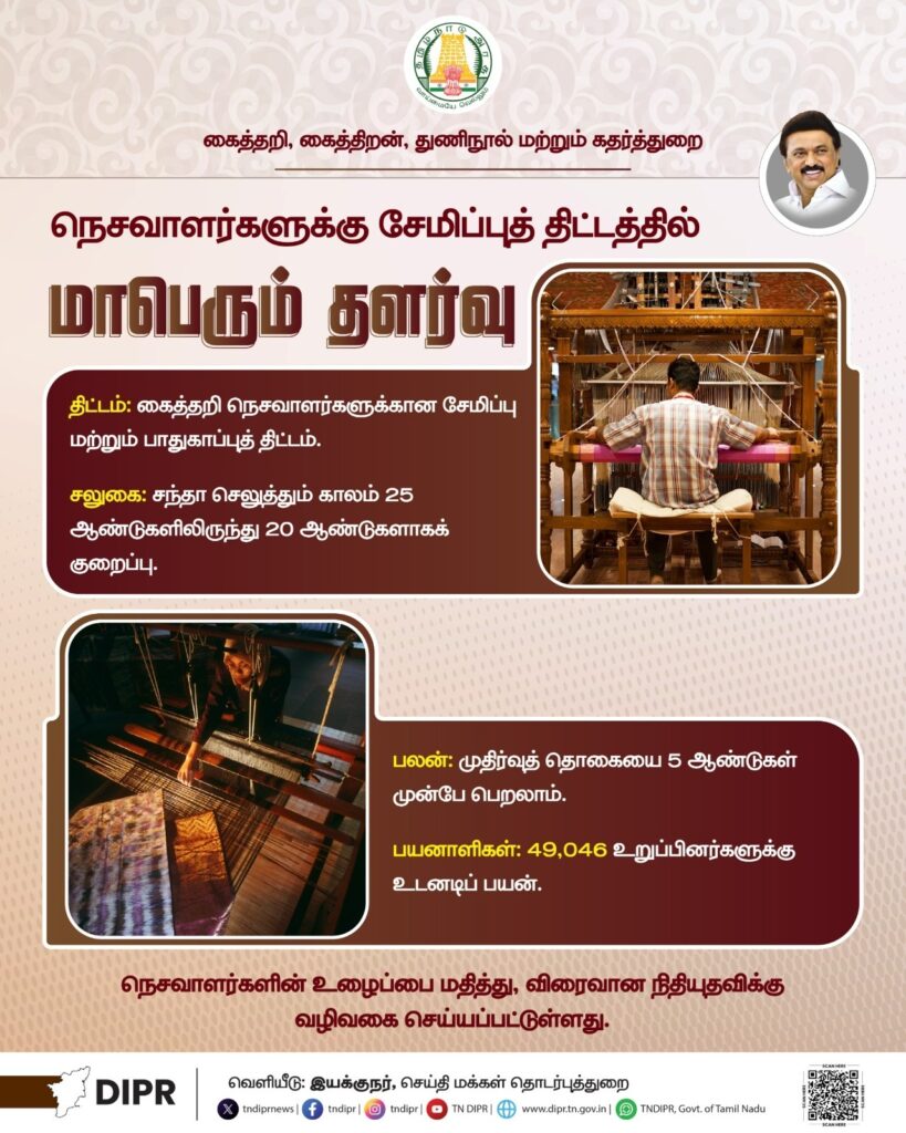 கைத்தறி நெசவாளர்களுக்கான சேமிப்பு மற்றும் பாதுகாப்புத் திட்டம்.
